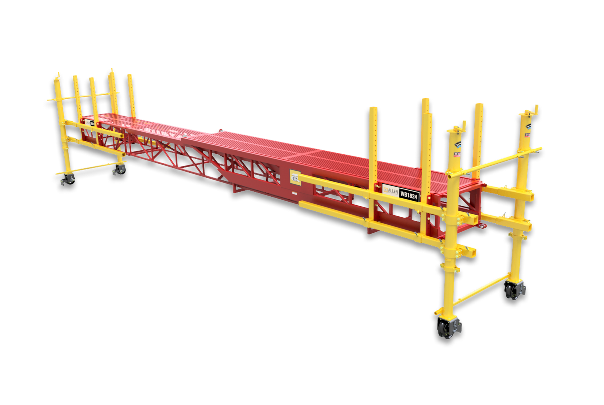 The Allen 1824 Work Bridge extends up to 90 feet, making it a versatile support solution for large‑scale projects. While commonly used in bridge deck applications, it is equally effective for roadway and airport paving.