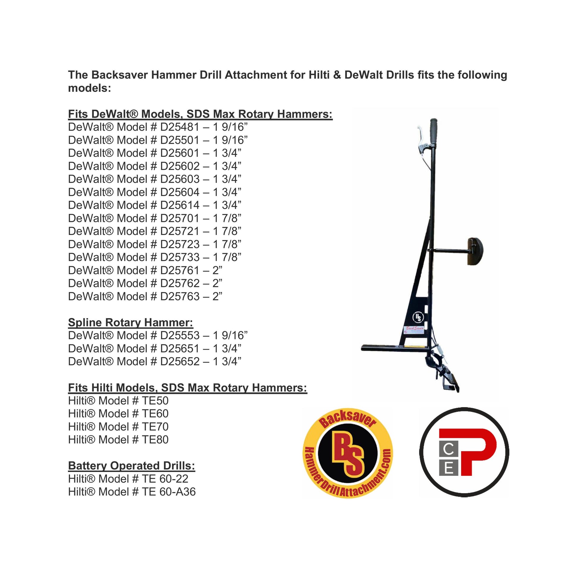 The BackSaver Hammer Drill Attachment is designed to make dowel drilling safer, faster, and more ergonomic. Engineered to fit leading hammer drill brands — including DeWalt, Hilti, Bosch, and Makita — this innovative attachment transforms your standard rotary hammer into a productivity-boosting tool that helps reduce fatigue and injury risk.