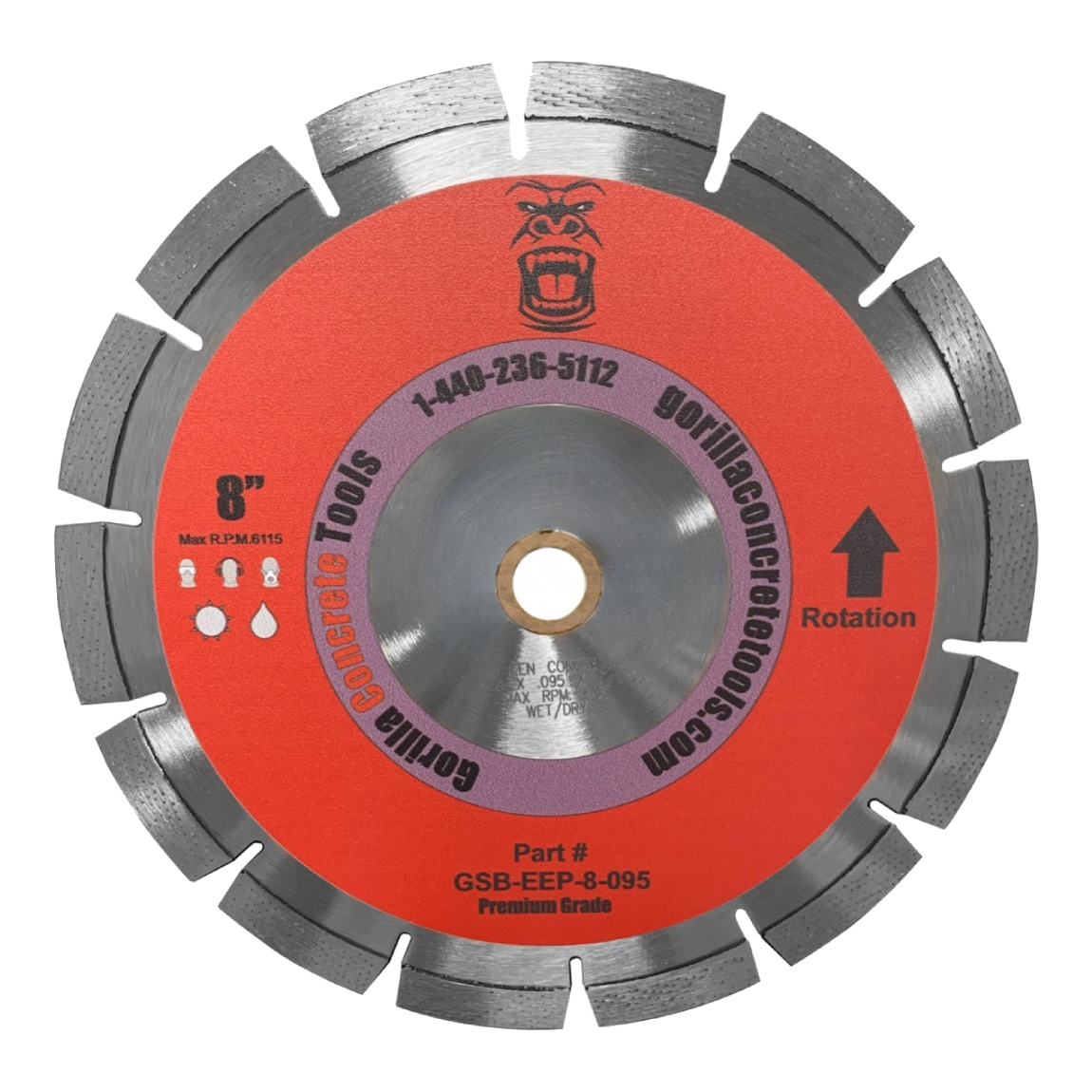 - 8" Premium blade with .095" width for Very Hard Aggregate